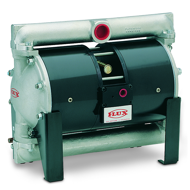 The FLUX compressed air diaphragm pump FDMH 25 is available in injection-molded version and is especially available for pressure increase up to 20 bar (pressure-balanced 3: 1). The pump is self-priming and dry running safe. It is characterized by its versatility and can be used to convey low-viscosity to high-viscosity media with solid particles, abrasive media, highly flammable substances or liquids with a high gas content.